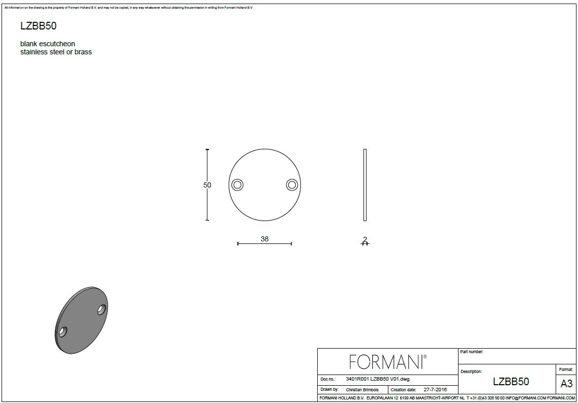 1 Blindplatte „BOSCO LZBB50“, polierter Edelstahl, Ø 50 mm und 2 mm dick, entworfen von Lazaro Rosa Violan