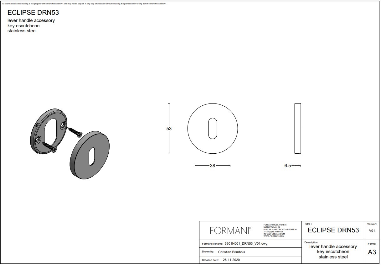 Das Schlüsselschild gehört zur „ECLIPSE“-Serie von Formani und ist aus Edelstahl gefertigt. Als letzte Behandlung wird dieses Bild gebürstet, wodurch es ein mattes Aussehen erhält.