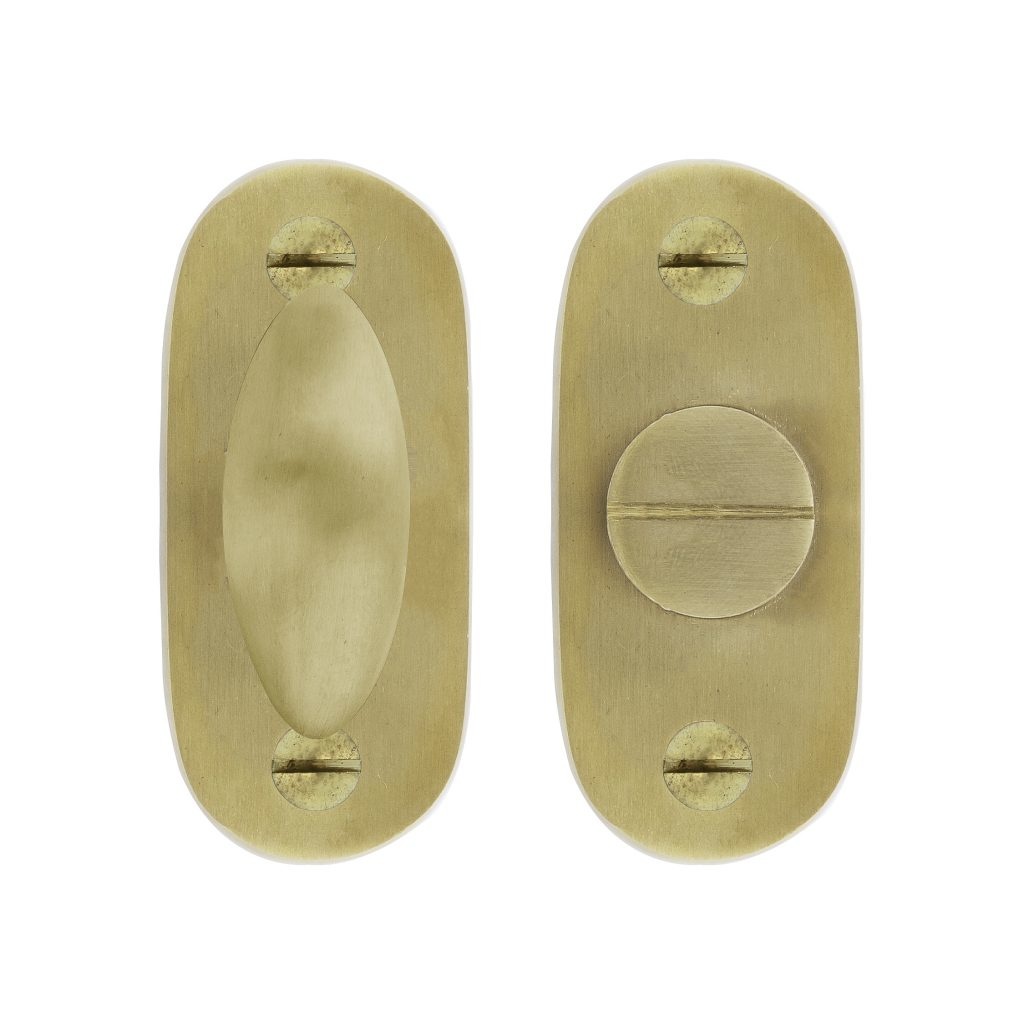 Diese ovale Toilettengarnitur aus gebürstetem Messing von Dauby aus der Kollektion "CDL" (Créations de Laiton) passt hervorragend zu den Türgriffen CIH1000/PBTC1 von Dauby.