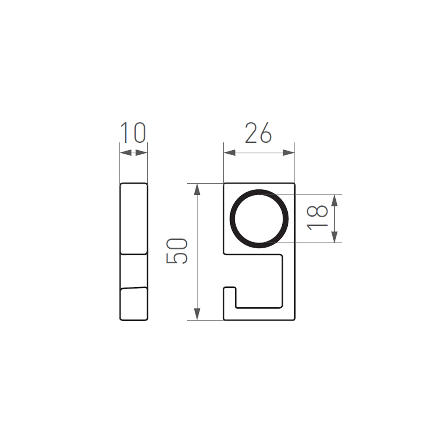 Stück Haken Q Rohmetall (RM) für Vierkantschienenhalter