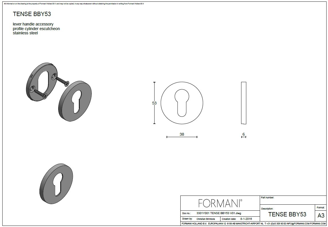 Die Zylinderplatte gehört zur Formani „TENSE“-Serie und ist aus Edelstahl gefertigt. Die Platte ist mit einem gebürsteten Finish für ein mattes Finish versehen.