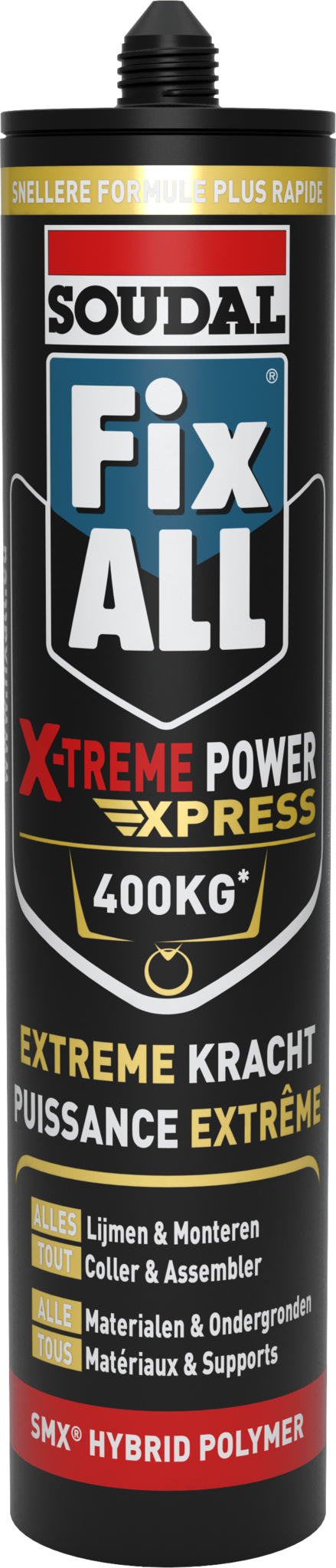 Der Hybrid-Montagekleber Fix ALL® X-treme Power Express eignet sich zum Verkleben extremer Belastungen ohne Unterstützung.
