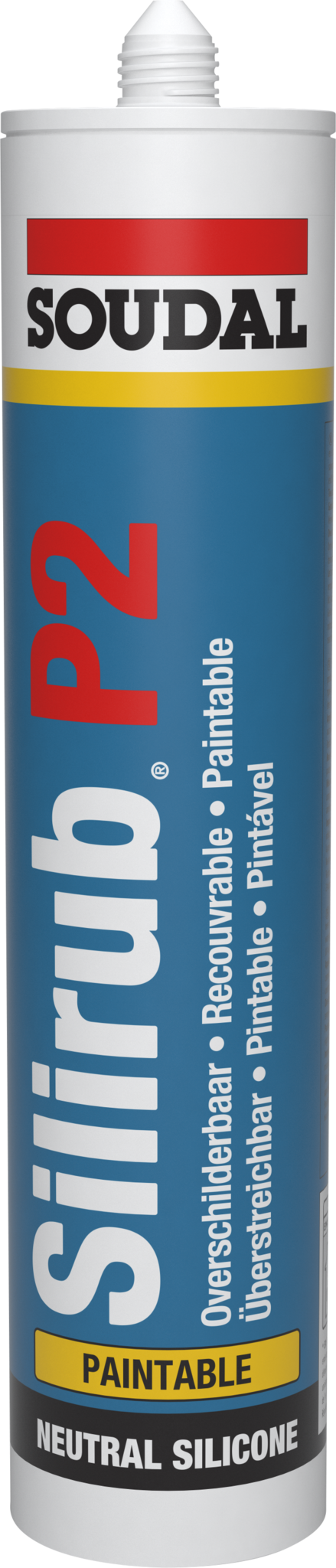 Silirub P2 begrenzt überstreichbares Silikon. Eine geruchslose, neutrale, universelle und überstreichbare Einkomponenten-Fugen- und Glasermasse.