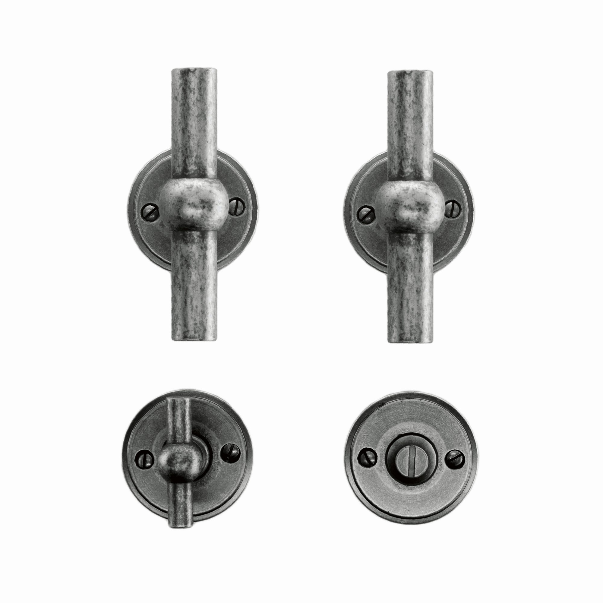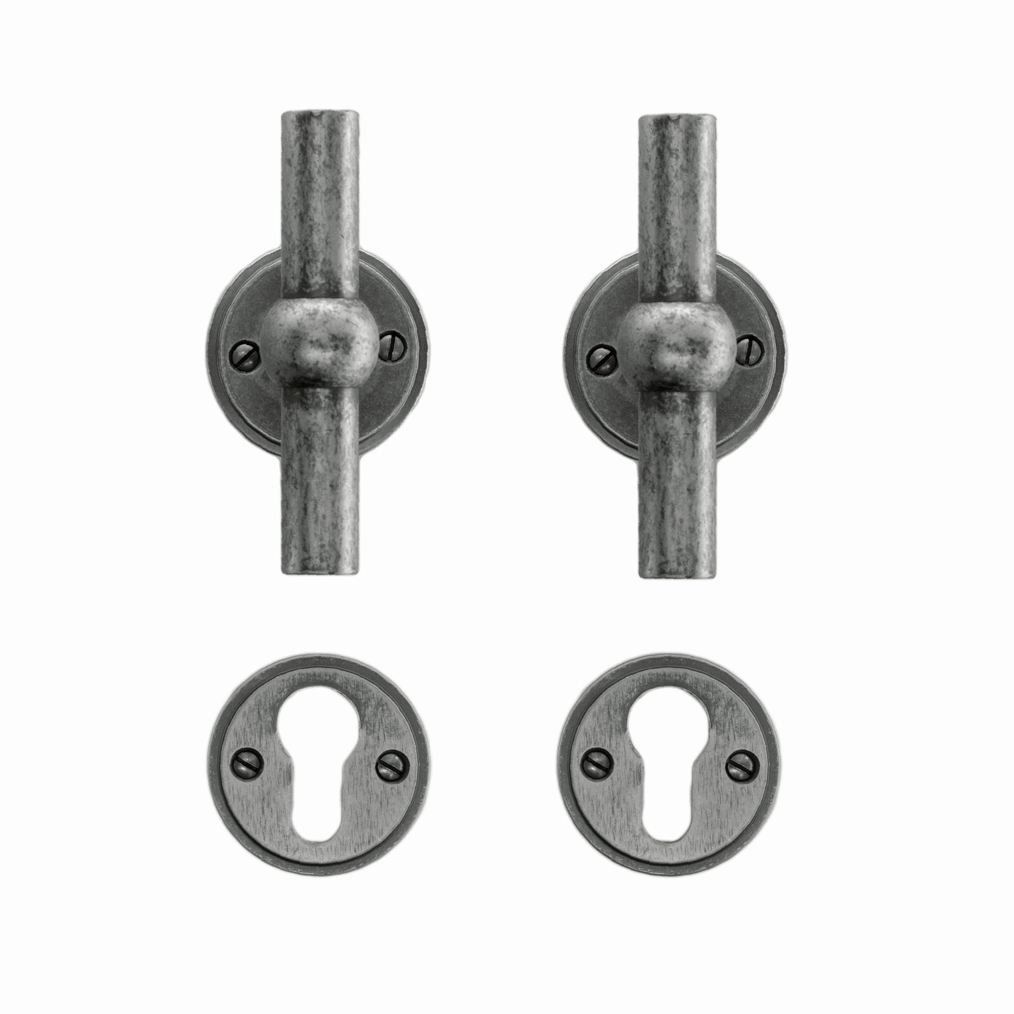 Klassische Türgriffe mit T+T-Kombination und Finish in Altsilber.