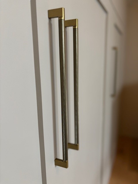 Dieser Möbelgriff wird aus Aluminium hergestellt und dann mit einer Goldbeschichtung versehen, die gebürstet wird, um die Vintage-Gold-Optik zu erhalten. Auffälliges Merkmal dieses Möbelgriffs ist das gerippte Muster auf dem runden Griff.
