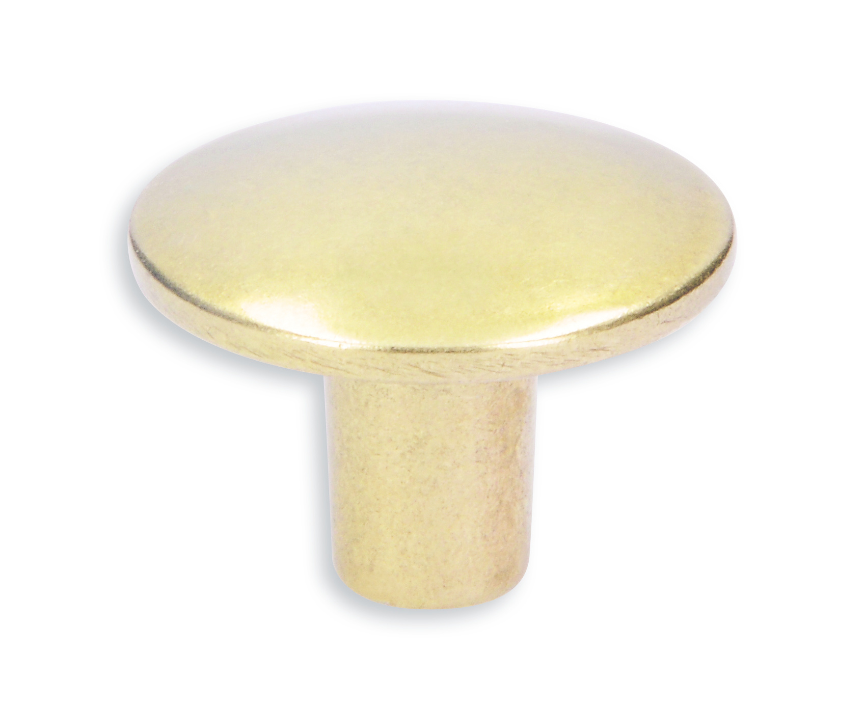 Schöner runder Möbelknopf aus Metall mit kräftiger goldfarbener Beschichtung. Der Knopf ist maschinell bearbeitet, um den alten Gold-Look zu erhalten.
