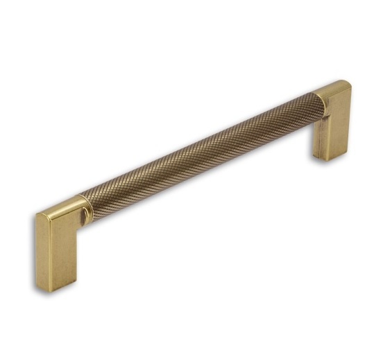 Dieser Möbelgriff wird aus Aluminium hergestellt und dann mit einer Goldbeschichtung versehen, die gebürstet wird, um die Vintage-Gold-Optik zu erhalten. Auffälliges Merkmal dieses Möbelgriffs ist das gerippte Muster auf dem runden Griff.