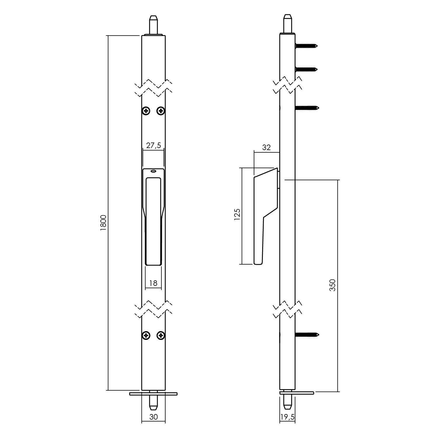 Mit einem Intersteel-Getriebe können Sie das Fenster mit einem Handgriff oben und unten verriegeln. Dieses Fenstergetriebe hat eine Länge von 1800 mm und ist mit einem Griff bei 350 mm ausgestattet, sodass das schmale Getriebe auch den Anforderungen von WoonKeur entspricht.