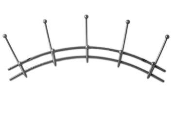 Moderne gebogene Garderobe mit 5 Haken in Aluminiumfarbe mit einer Gesamtlänge von 410 mm