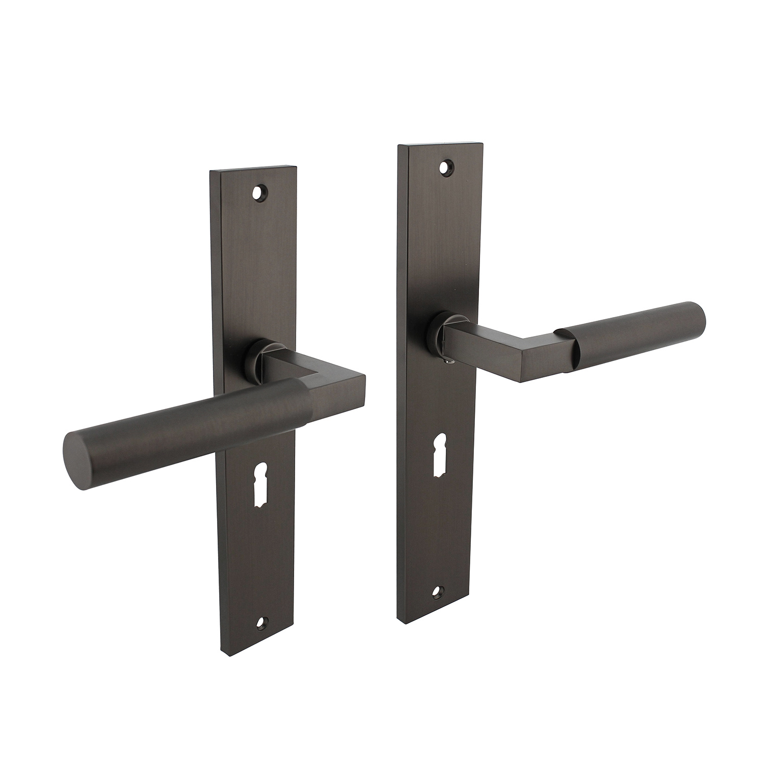Die Türgriffe sind in 4 Varianten erhältlich: Blind, mit Schlüsselloch (Achsenmaß 56,72 mm oder 78 mm), mit Zylinderloch (Achsenmaß 55,72 oder 78 mm) und WC-Beschlag (mit Achsmaß 63 mm oder 78 mm). Treffen Sie Ihre Wahl im Scrollmenü oben rechts