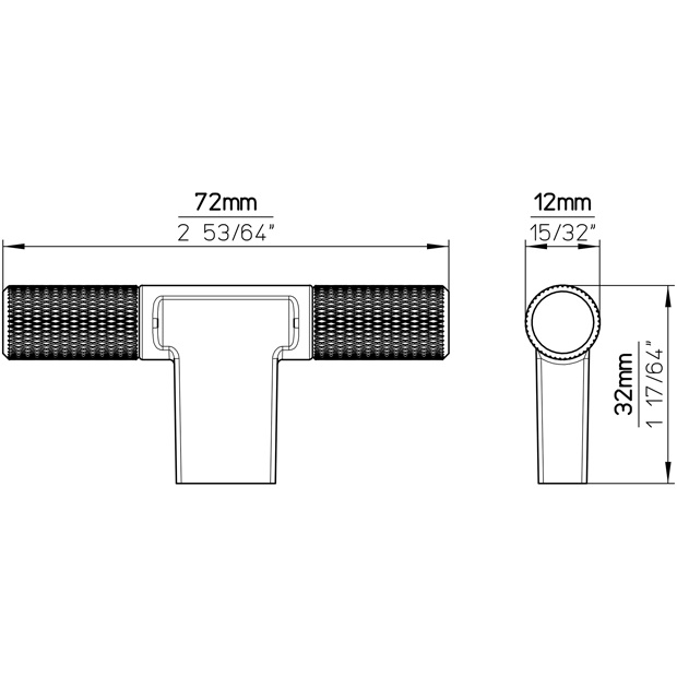 72 mm T-förmiger Möbelknopf mit kreuz und quer geripptem Muster und Antik-Messing-Optik