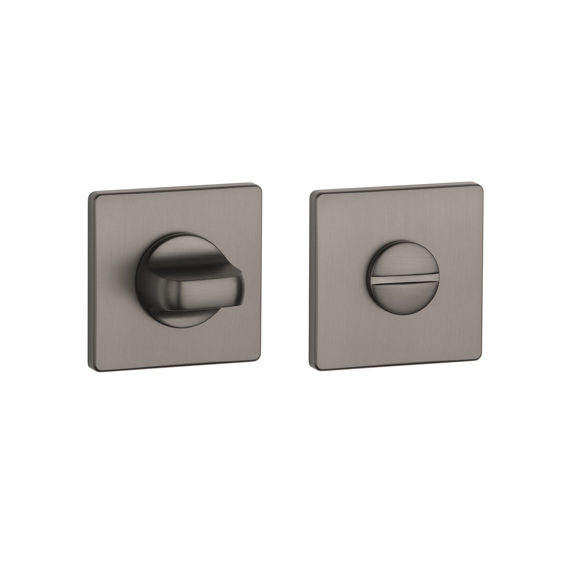 Diese graphitfarbene WC-Armatur verfügt über quadratische Rosetten von 52 x 52 mm mit einer Dicke von nur 5 mm, was ihnen ein sehr attraktives Aussehen verleiht.