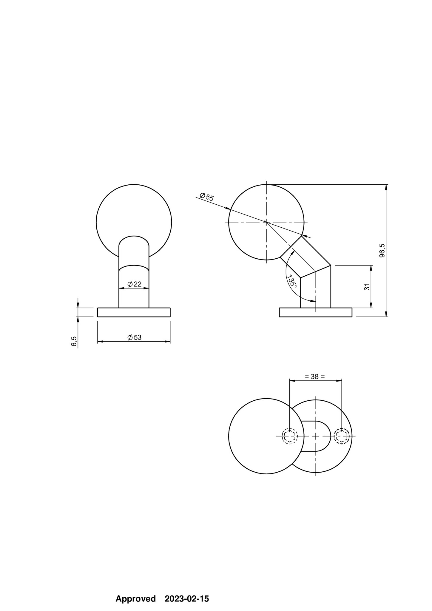 Der Knauf ist auf einer stabilen Stahlgrundrosette Ø 53 x 6,5 mm montiert und mit einer Abdeckrosette zur sauberen, unsichtbaren Befestigung versehen.