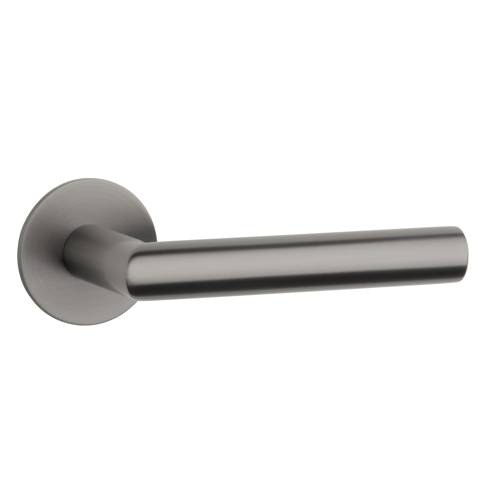 Diese basaltgrauen Türgriffe der Marke „STERK“ sind auf ultradünnen Rosetten von nur 3 mm montiert. Die Basaltfarbe ist dem bekannten Anthrazitgrau sehr ähnlich und hat ihren Namen vom vulkanischen Magmagestein.