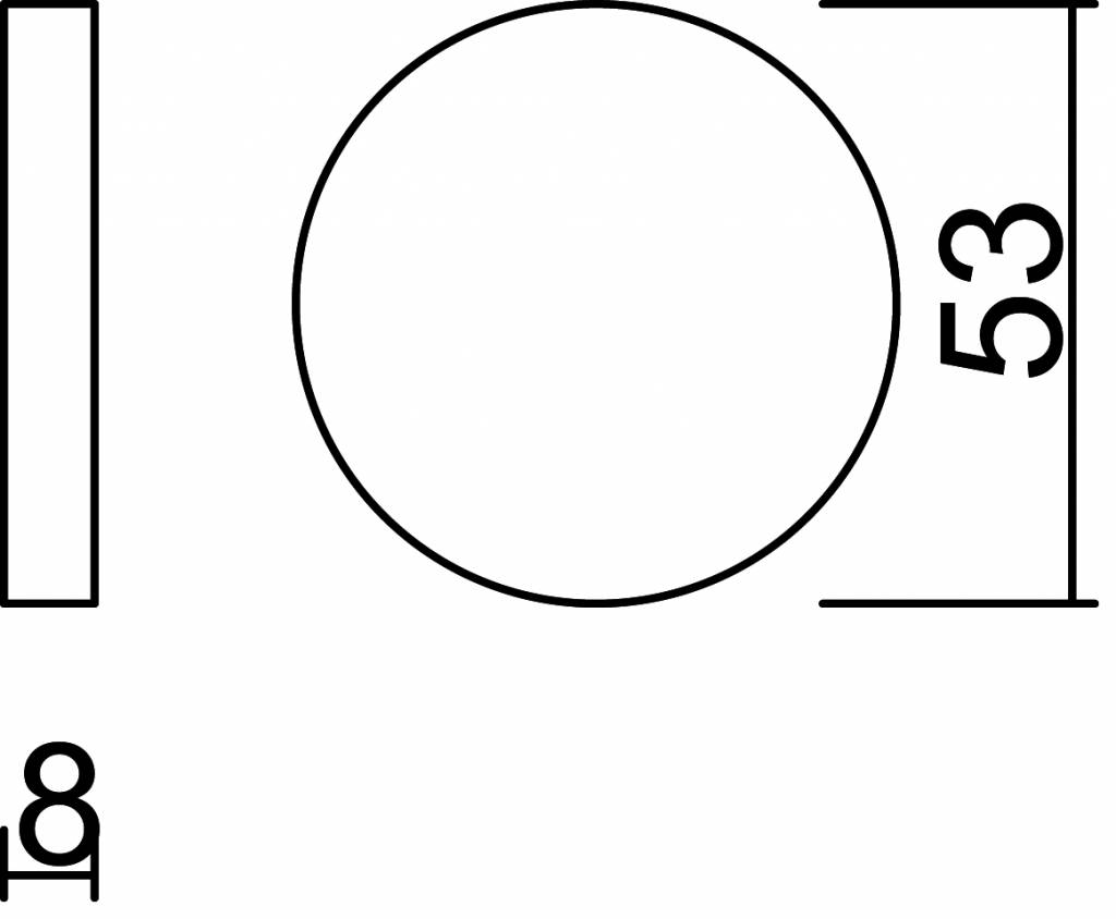 Diese Blindrosette ist eine runde Ausführung und hat einen Durchmesser von 53 mm und ist 8 mm tief. Es wird mit einer Bodenrosette aus Kunststoff und Befestigungsmaterial geliefert.