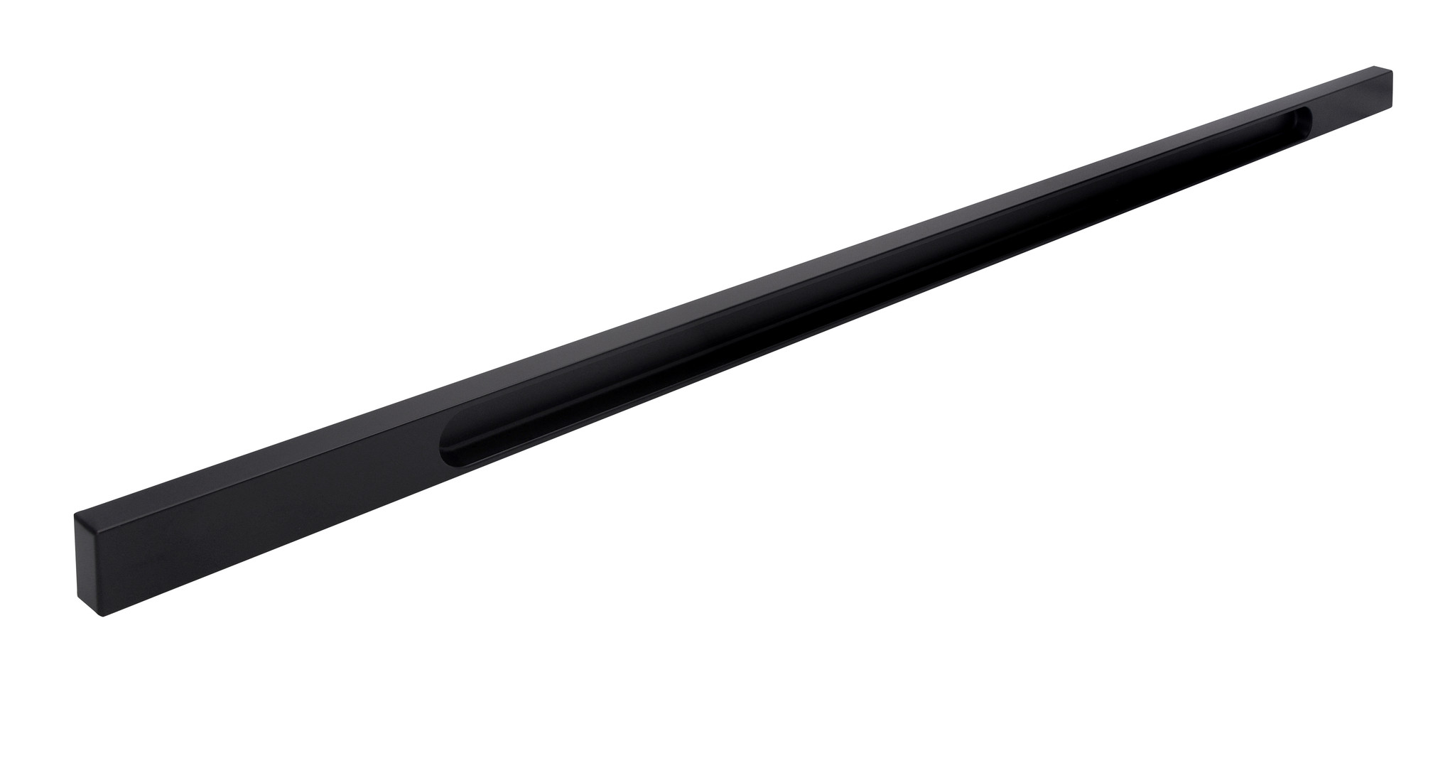 Mattschwarzes rechteckiges Blockprofil 576-704. Aus Aluminium und 25 mm hoch mit zwei Achsabständen