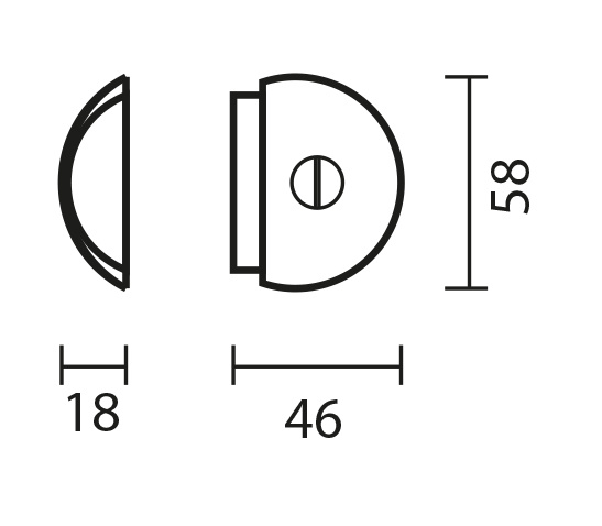 Der mattschwarze Türstopper hat die Form eines Halbmondes mit Gummiende, ist 46 x 58 mm groß und 18 mm hoch.