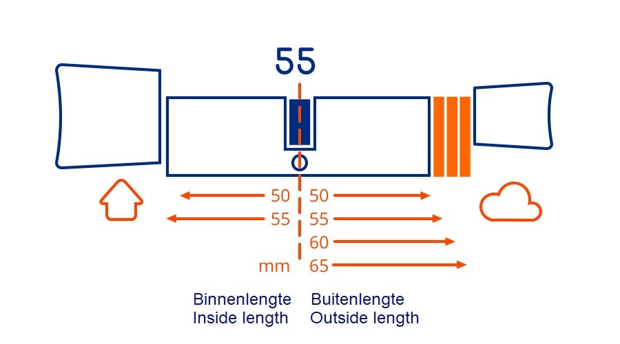 Der BOLD-Zylinder ist für jede Türstärke geeignet. Unten sehen Sie eine Übersicht darüber, welchen BOLD-Zylinder Sie für Ihre Türstärke benötigen.