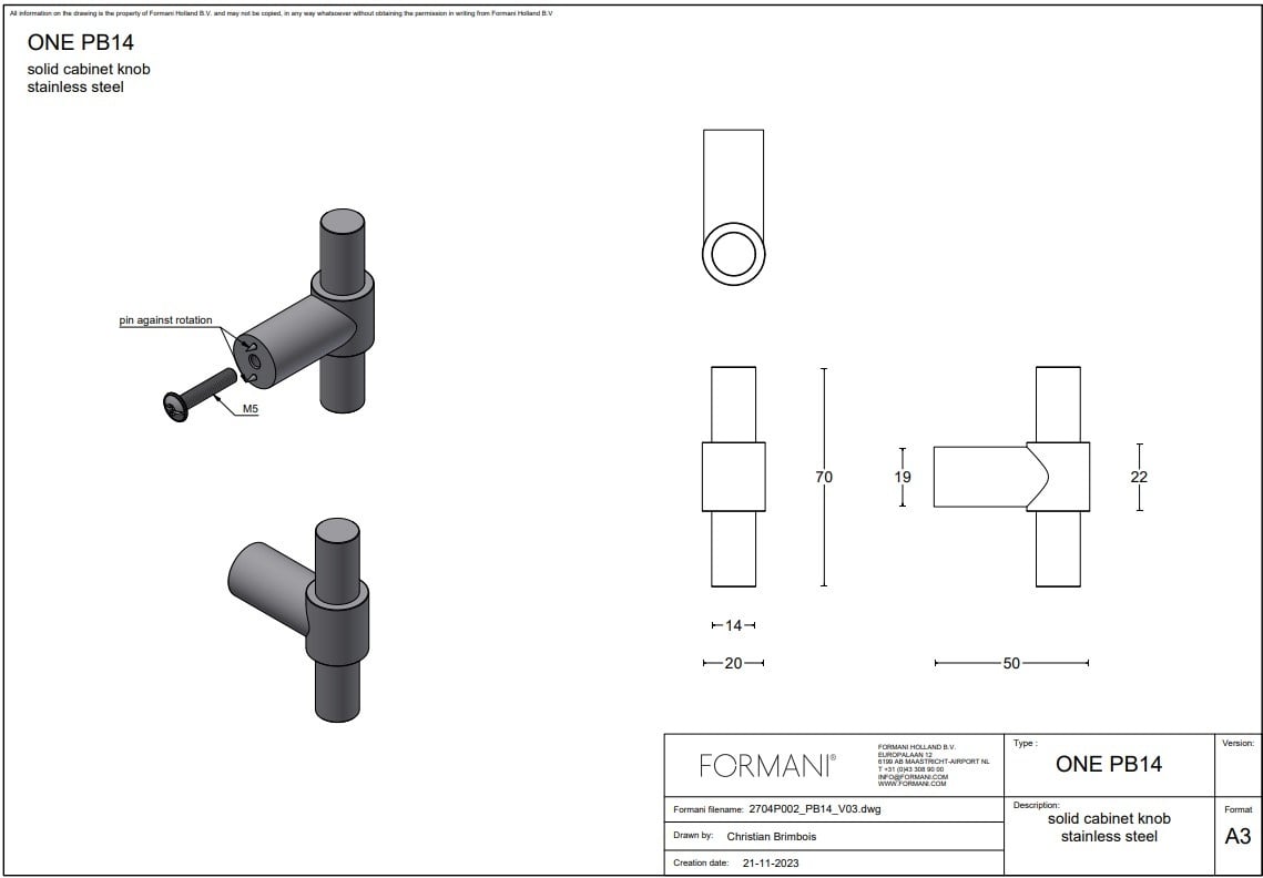 Diese ONE-Möbelknöpfe sind in einer kleineren Version (PB9) oder einer etwas größeren Version (PB14) erhältlich. Treffen Sie Ihre Wahl im Scrollmenü oben rechts.