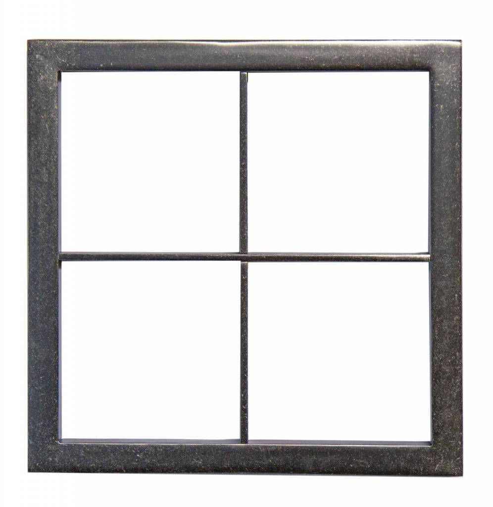 Der Sockel dieser quadratischen Bullaugen besteht aus Edelstahl, anschließend sind sie mit einer Altsilberbeschichtung versehen.