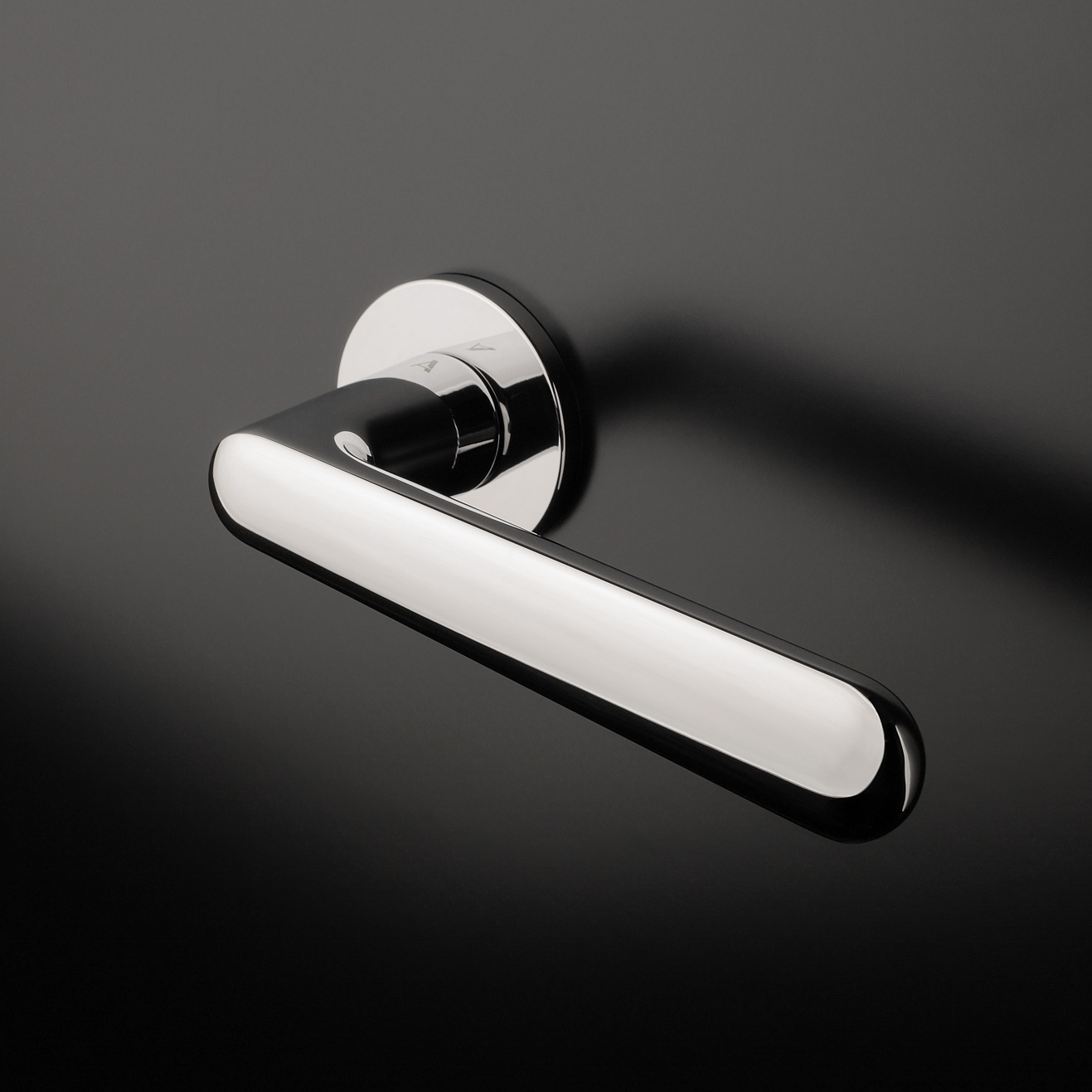 Die Basis dieser Türgriffe mit dem Aprile-Logo besteht aus massivem Zamak, einem sehr starken und langlebigen Material aus Zink und Aluminium.