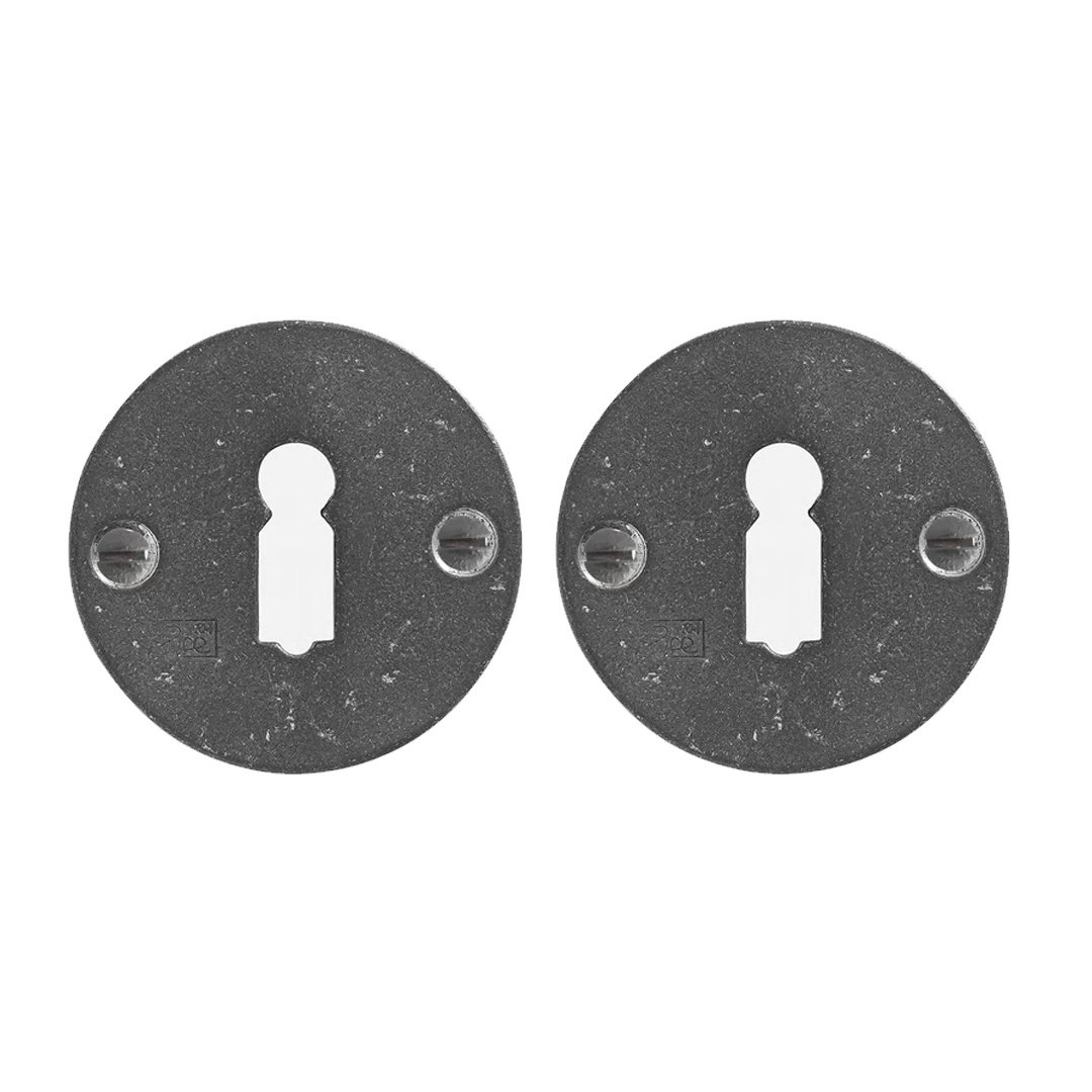 Die Rohmetall-Oberfläche (RM) verleiht der Rosette ein robustes und industrielles Aussehen. Diese Metalllegierung hat eine dunkelgraue, betonartige Optik und wird nach dem Sandguss nicht weiter poliert, sodass die natürliche Struktur sichtbar bleibt und das Beschlagteil einen widerstandsfähigen Charakter erhält.