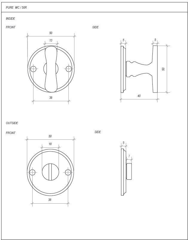 Die WC-Armatur Dauby 50F aus der Pure®-Kollektion ist ein Komplettset zum Verriegeln von WC- und Badezimmertüren. Das Set besteht aus einem Drehknopf mit Notentriegelung und passenden Rosetten und bietet eine funktionale und stilvolle Lösung für Innentüren.