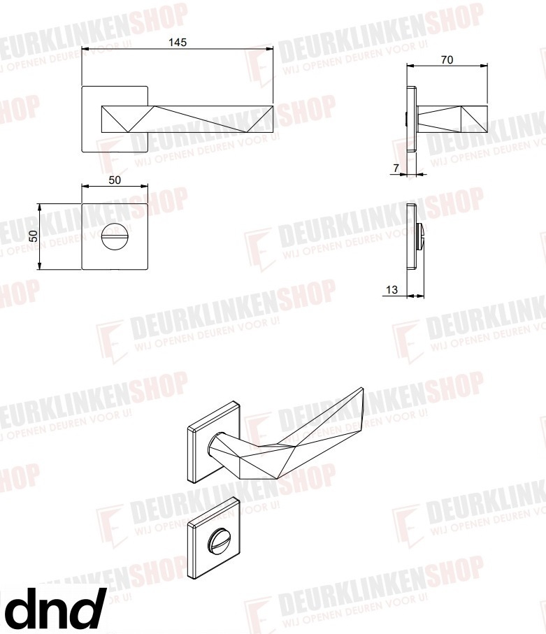 Diese exklusiven Türgriffe stehen auf quadratischen gefederten Rosetten (50x7mm) und sind für Innentüren von 38-54mm geeignet.