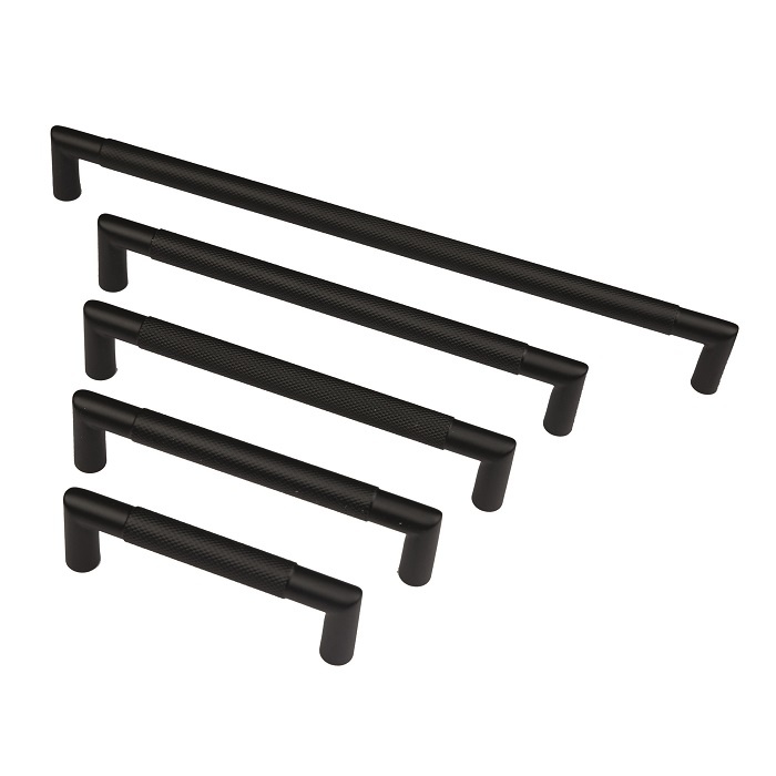 Der Möbelgriff in mattschwarzer Farbe ist in verschiedenen Größen erhältlich, die Sie im Scrollmenü oben rechts finden.