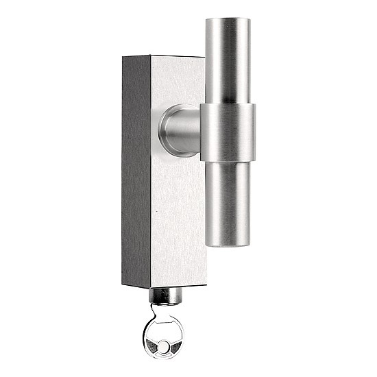 Der Fenstergriff aus gebürstetem, mattem Edelstahl wird pro Stück inklusive Montagematerial, Schlüssel und dazugehörigem Stift von 7 x 7 mm geliefert. Eventuell muss der Stift um 45 mm in der Länge gekürzt werden.