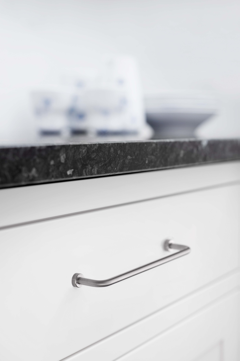 Dieser Möbelgriff besteht aus Edelstahl, der am Ende gebürstet ist, um einen seidigen Glanz zu erzielen.