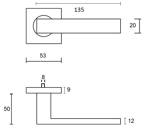 Diese schwarzen Türgriffe sind gefedert und werden als Paar inklusive Vierkantrosetten, Vierkantstift (8x8mm) und Befestigungsmaterial geliefert.