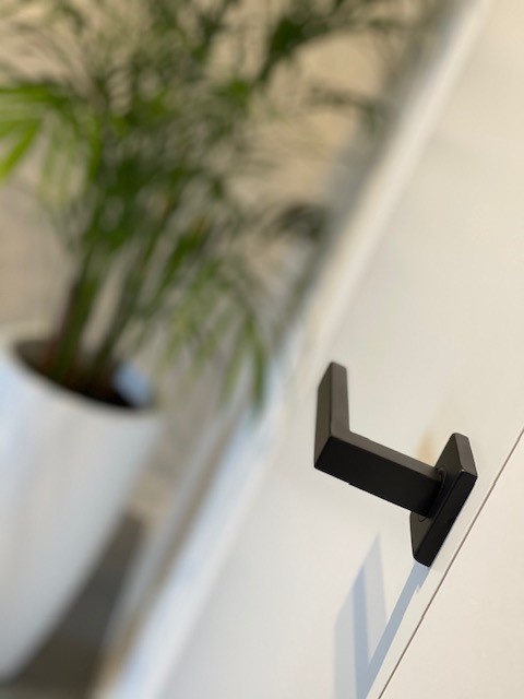 Diese schwarzen Türgriffe aus Edelstahl sind von der Form her eine Mischung aus der Kubic-Form und der Cosmic-Form.