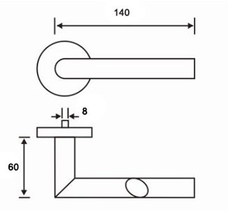 Beschreibung Design-Türgriffe aus Edelstahl mit ovalen Griffen und runden Rosetten