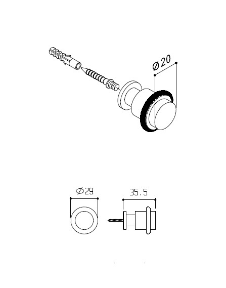 Dieser Türstopper aus Edelstahl hat einen Durchmesser von Ø20 mm und eine Höhe von 35,5 mm.