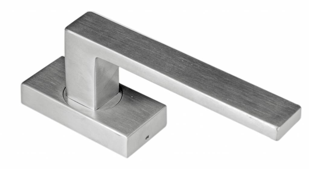 Der Griff dieser Fenstergriffe aus Edelstahl steht auf einer rechteckigen Rosette von 70 x 33 mm. Die Löcher zur Befestigung dieses Fenstergriffs sind 43 mm voneinander entfernt.