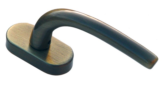 Diese Fenstergriffe haben einen gebogenen Griff und eine ovale Rosette mit einer Breite von 31 mm.