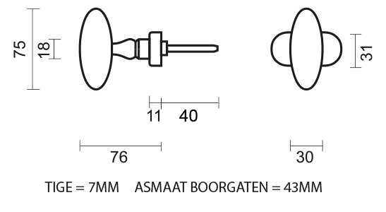 Der Fenstergriff steht auf einer ovalen Rosette mit einer Breite von 31 mm.