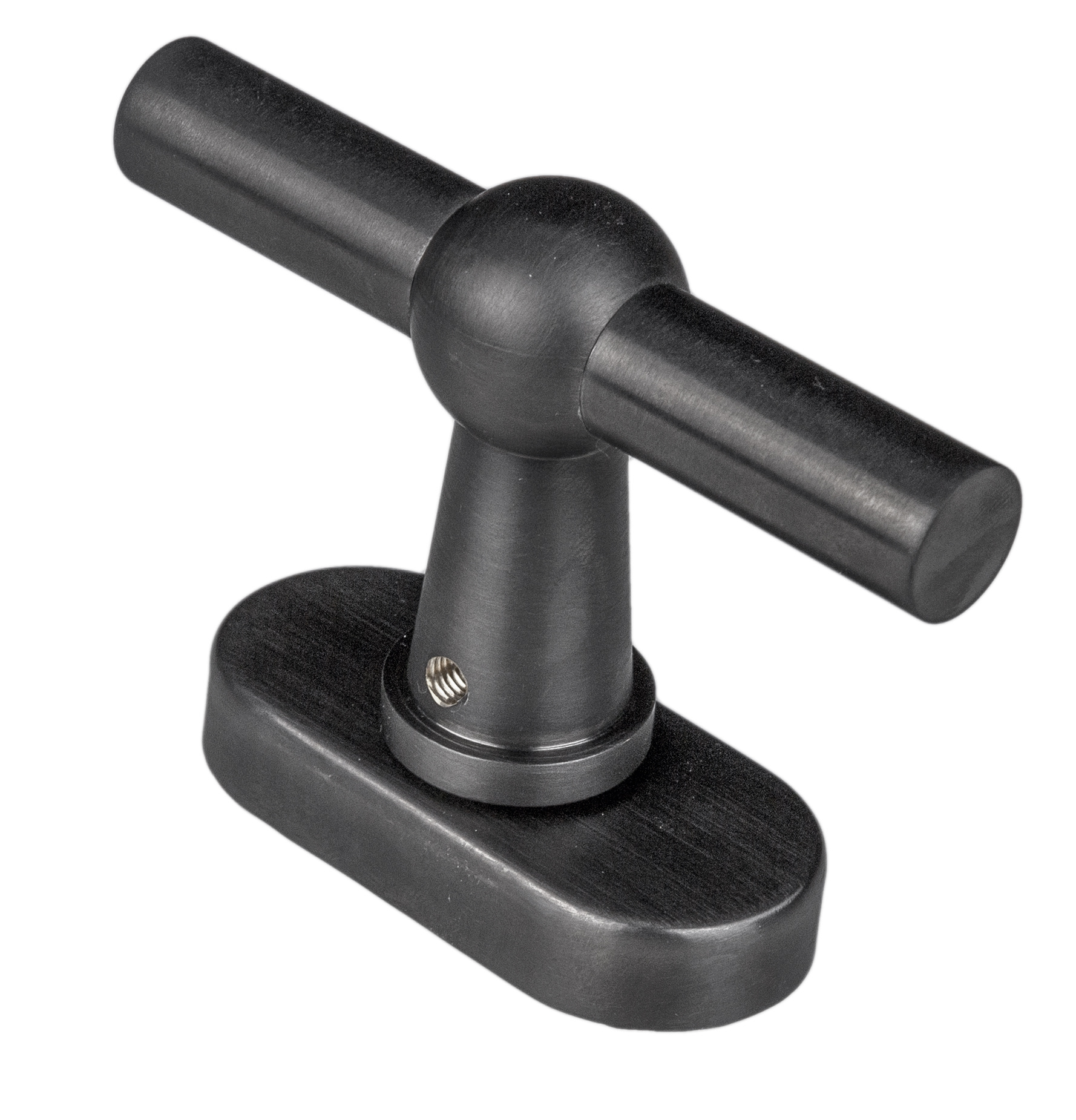 Der T-förmige Griff mit einem Ø von 14 mm steht auf einer ovalen Rosette von 30 x 65 mm.