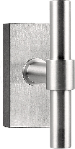 Der Fenstergriff aus mattem Edelstahl steht auf einer rechteckigen Rosette von 70x35 mm mit einer Stärke von 12 mm. Der T-förmige Griff hat eine Länge von 100 mm und einen Ø von 15 mm. Dieser Fenstergriff besteht aus Edelstahl als Basis und wird anschließend gebürstet, um das matte Aussehen zu erzielen.