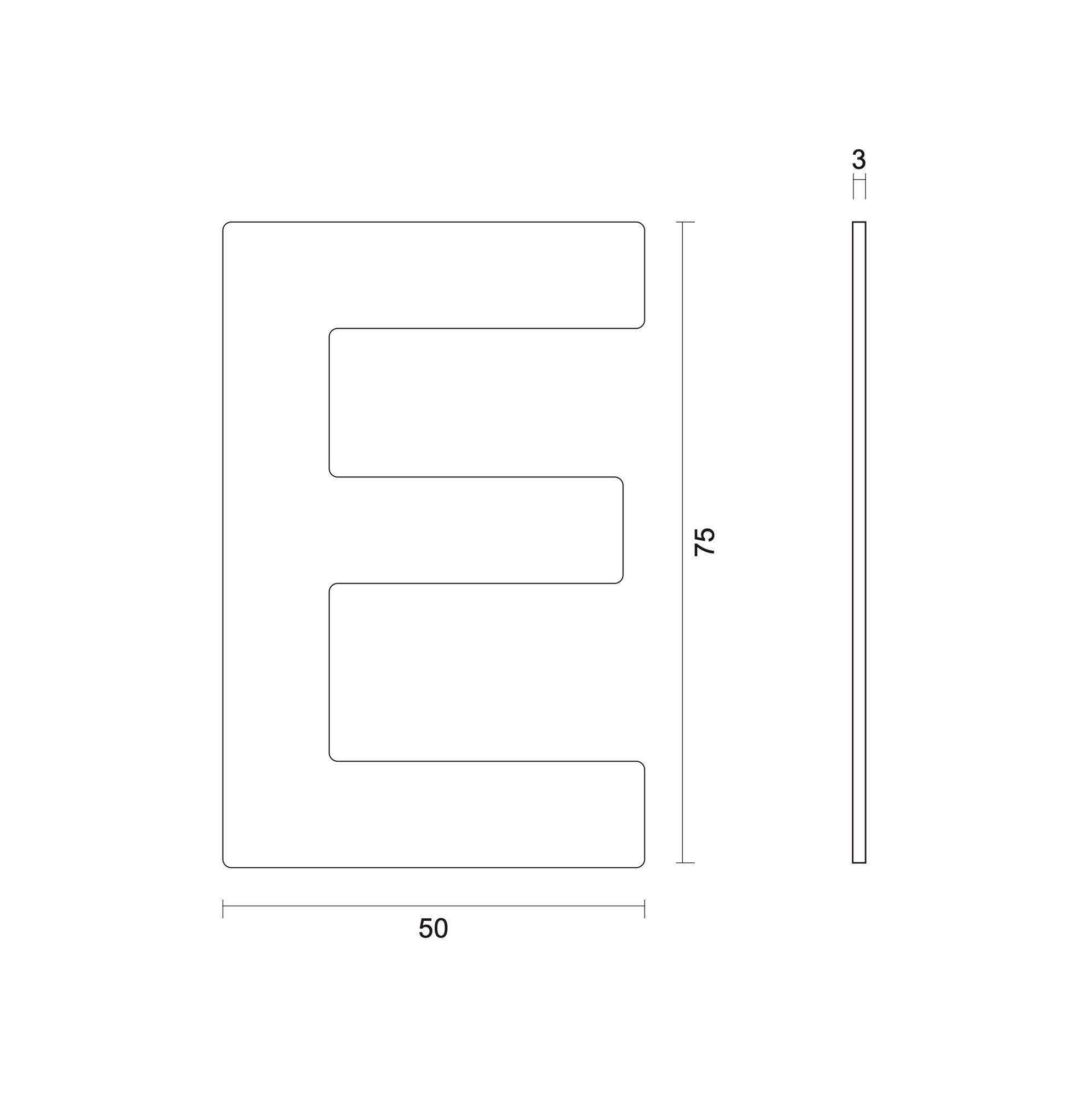 Kleinere Version eines Edelstahl-Hausbuchstabens „E“ mit einer Höhe von 75 mm. Der Hausbuchstabe aus Edelstahl ist selbstklebend, sodass keine Löcher gebohrt werden müssen. Der Buchstabe kann auf jede ebene, glatte Oberfläche geklebt werden.