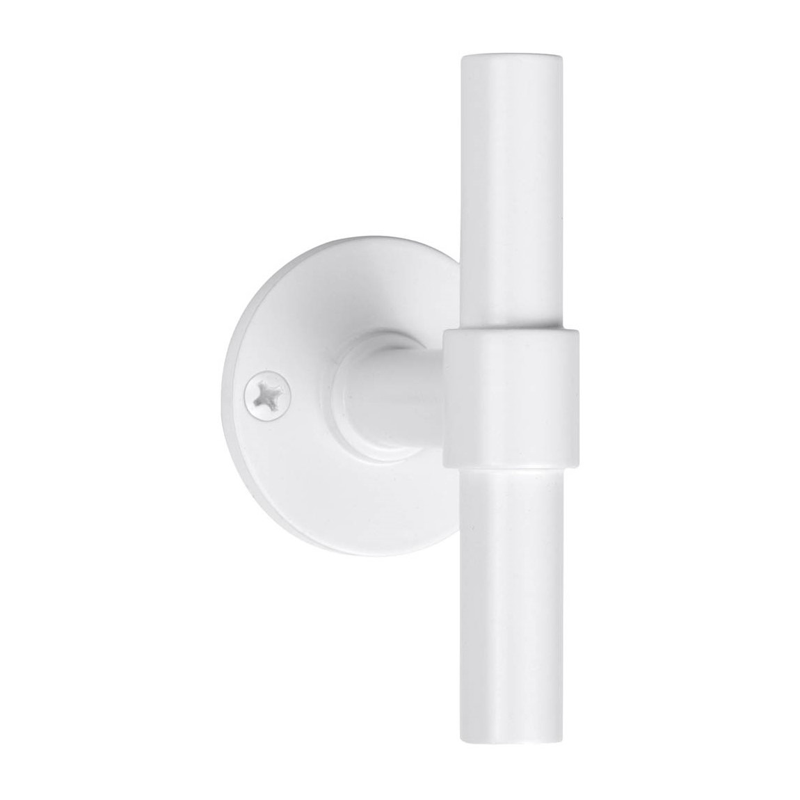 Fester Haustürknauf aus massivem Edelstahl auf einer runden Rosette in T-Form aus der ONE-Kollektion von Formani. Der feste Haustürknauf eignet sich zur Bereitstellung einer Türklinke auf der Innenseite.