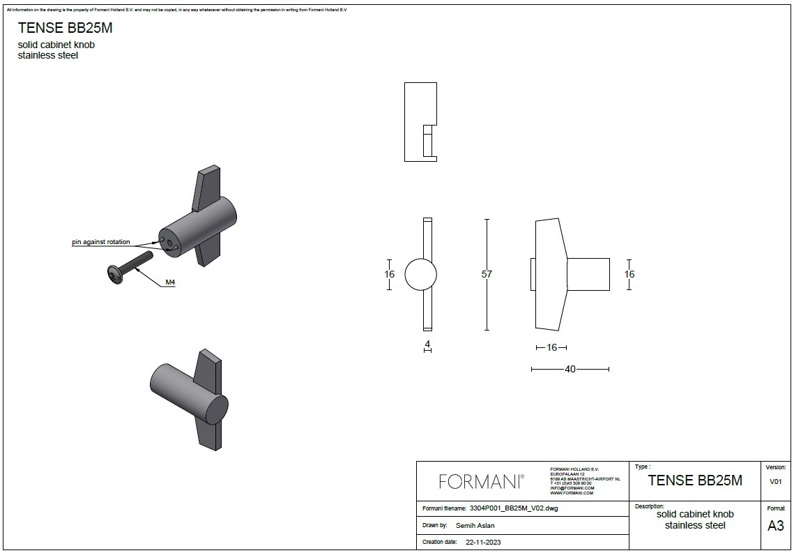Der Formani BB25M ist ein schlanker, moderner Möbelknopf aus der Tense-Kollektion, der Schlichtheit und Eleganz vereint.