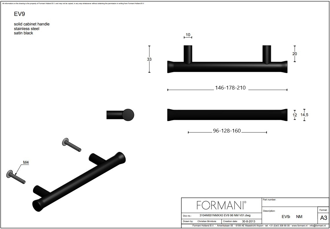 Der Möbelgriff NOUR EV9, entworfen von Edward van Vliet für FORMANI, ist ein raffiniertes Designstück in mattem Schwarz