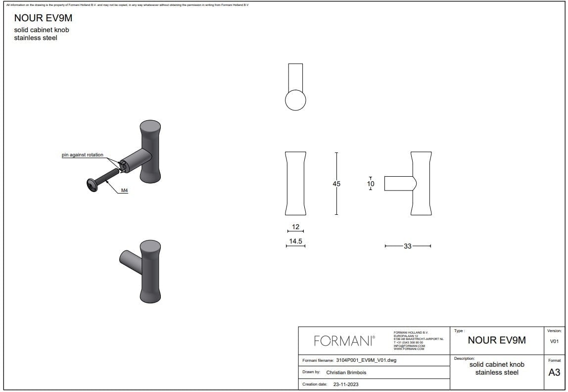 Beschreibung Der Möbelknopf NOUR EV9M, entworfen von Edward van Vliet für FORMANI, passt nahtlos zu den Möbelgriffen NOUR EV9