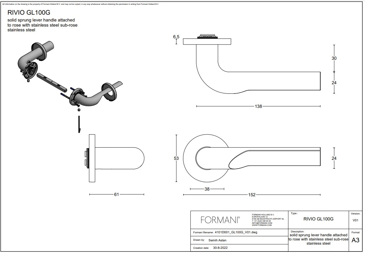 Die Formani-Türgriffe aus mattem Edelstahl stammen aus der Kollektion „RIVIO“. Die Basis dieser Türgriffe besteht aus Edelstahl, der am Ende gebürstet ist, um ein mattes Finish zu erhalten.