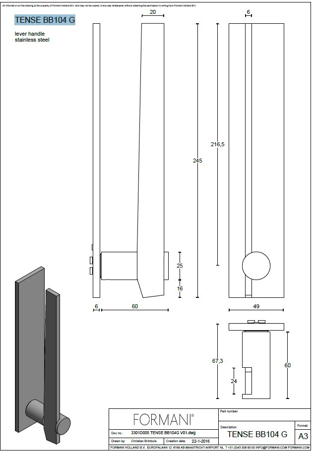 Der Formani BB104-G ist ein eleganter, moderner Türgriff aus der TENSE-Kollektion , entworfen von Bertram Beerbaum.