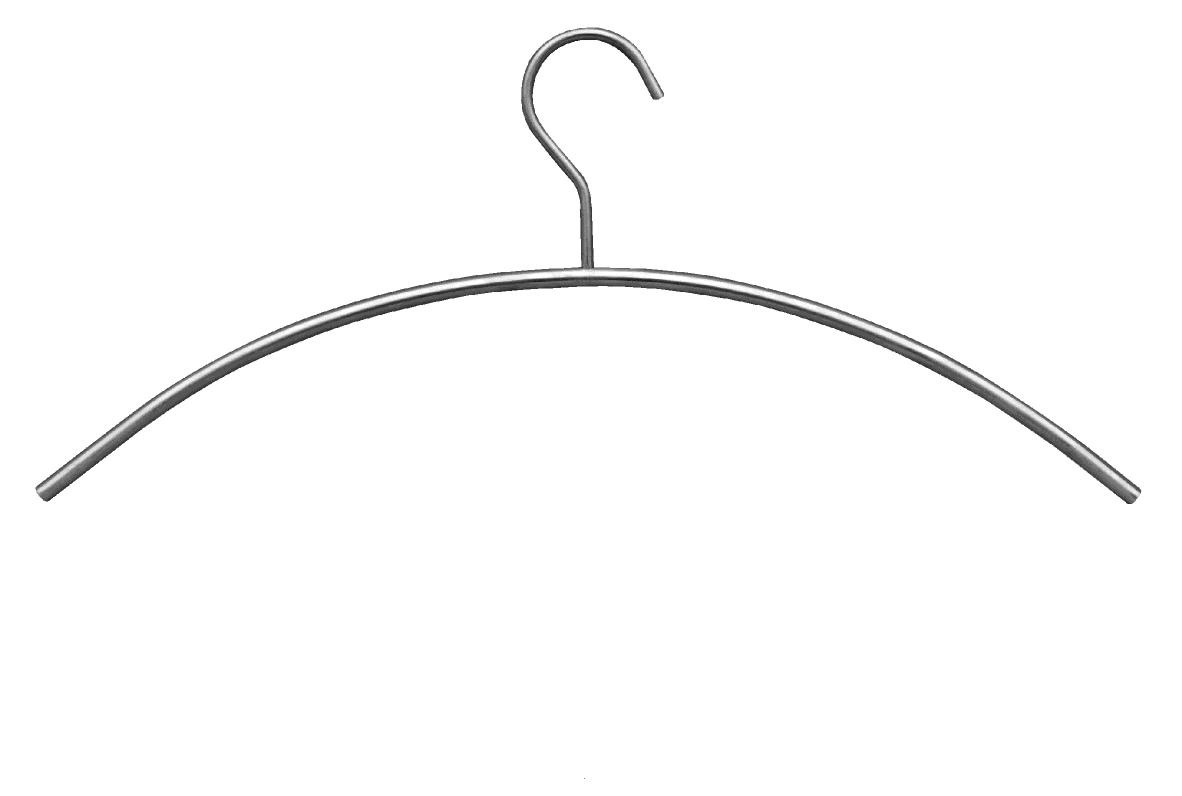 Dieser gebogene Kleiderbügel ist aus Edelstahl gefertigt und anschließend gebürstet, was ihm ein mattes Aussehen verleiht.