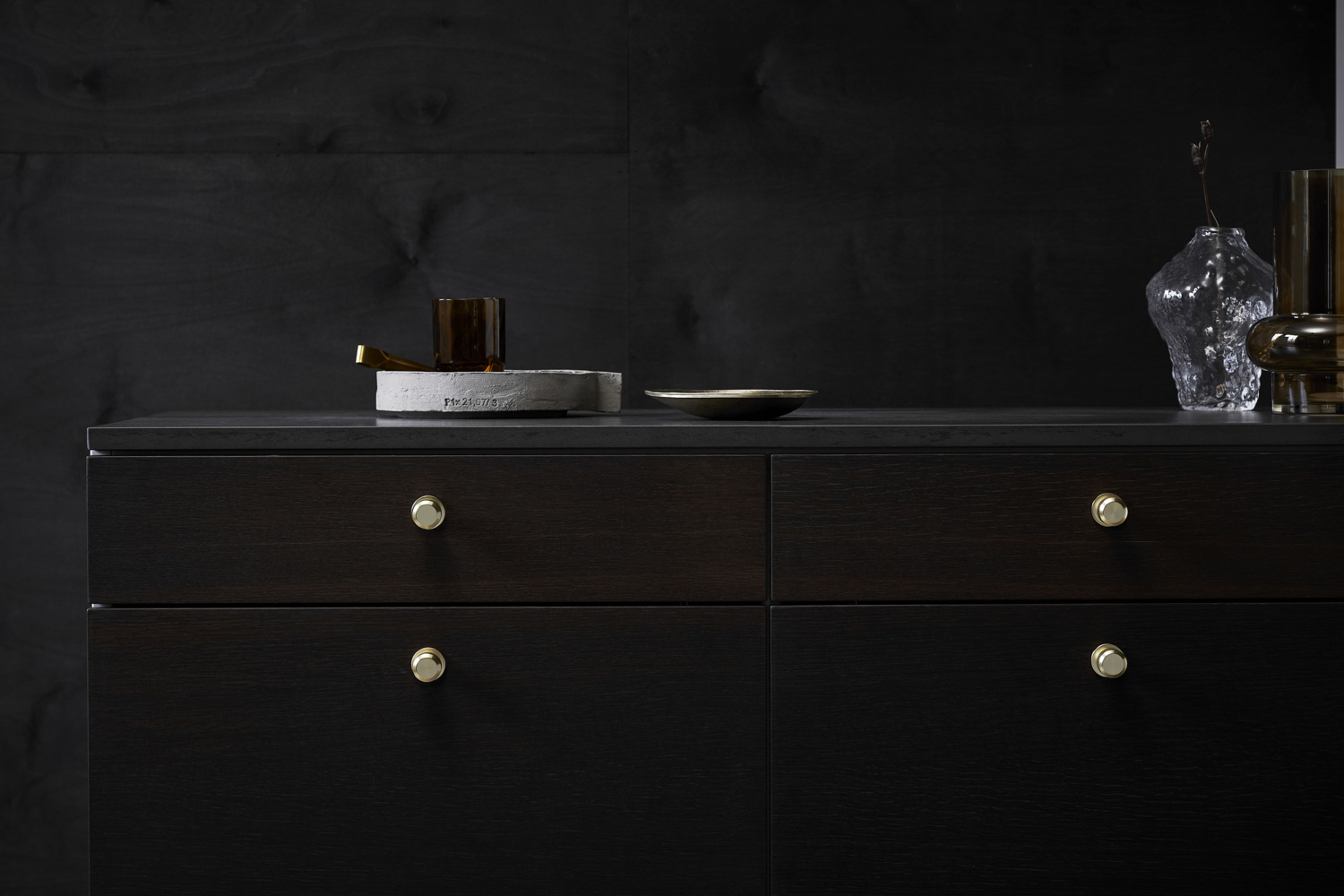 Runder goldfarbener Möbelknopf von Furnipart mit Kreuzschliffknopf Ø 25 mm aus der MANOR Kollektion