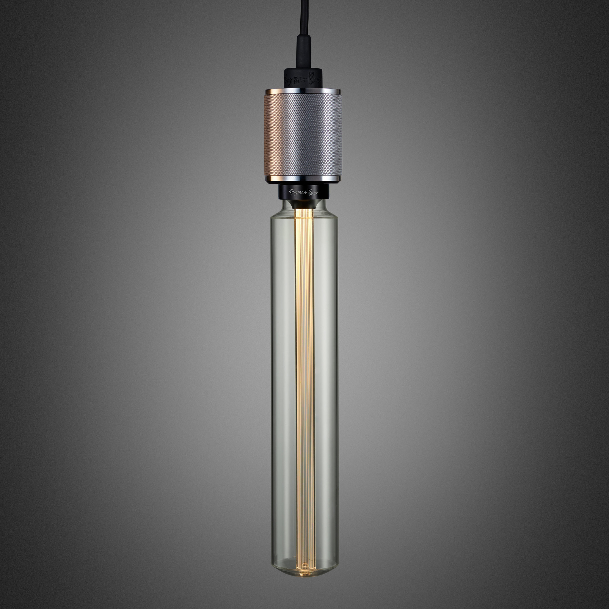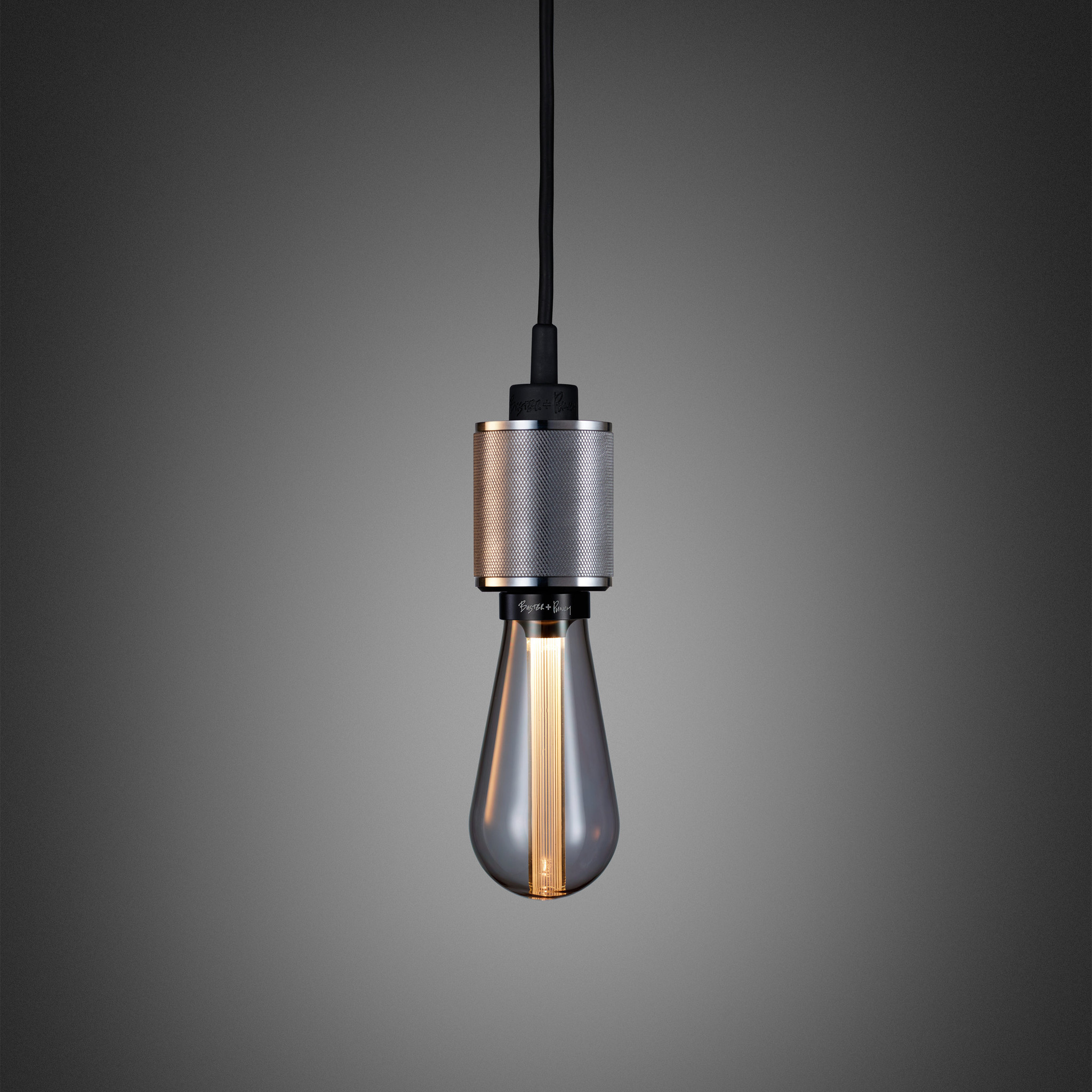 Diese Edelstahllampe hat eine E27-Fassung und wird mit einem mattschwarzen Gummikabel von 3 m und einer mattschwarzen Deckenkappe geliefert. Am besten kommt das Licht in Kombination mit einer unserer LED BUSTER LAMPS zur Geltung.